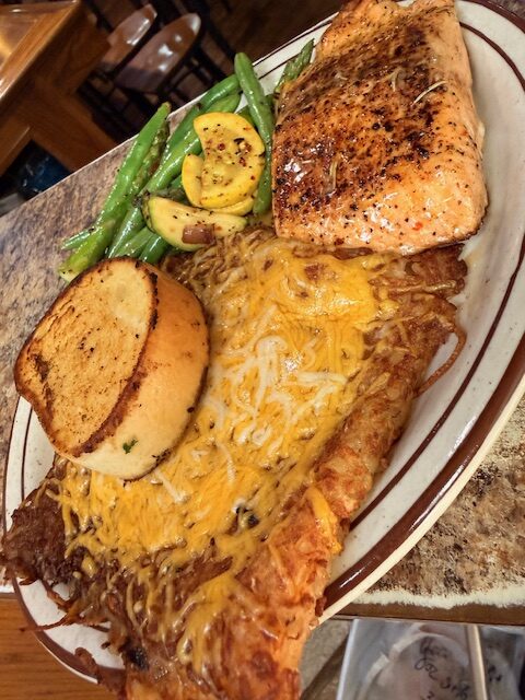 - 12oz new york strip with Lobster, Crab, and Scallop Ravioli